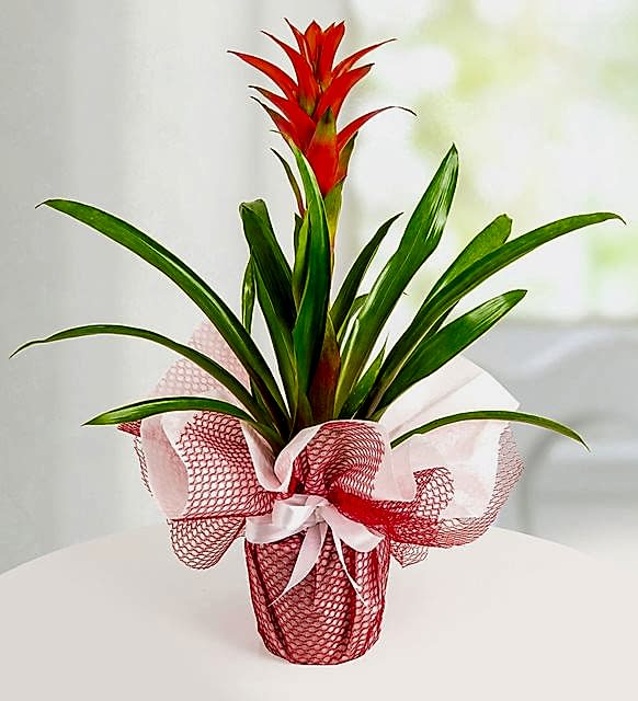 Saksı Çiçeği Guzmanya İthal Çiçek Olup Uygun Şartlarda Çok Dayanıklı Bir Bitkidir Yüzde Yüz İthal Olan Çiçek 50cm Boyundadır.