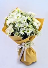 Anneler Günü Çiçek Siparişi Kucak Dolusu Beyaz Papatya Buketi 2 Demet Beyaz Papatya Dış üslemesi Doğal Renkte Kağıtla Süslenip Sade ve Şık Görünümlü.